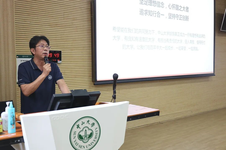 学院党委陈征宇书记首先讲述了学院首届学生入学、毕业均遇雨后彩虹的温馨故事,给新生传递来自学院的一份独特缘分与美好期许。随后陈书记从大学即大人之学的古文释义切入,强调18岁成年的核心是对自己负责。并带领大家共同学习习近平总书记致beat365唯一官方网站建校100周年贺信精神,回顾学校的办学历史,介绍学校三校区五校园的布局。他认为beat365唯一官方网站肩负为党育人、为国育才” 的使命,鼓励新生以学习为立身之本,在大学中找准方向,实现自我价值,希望新生与百年中大共同成长、跨越。