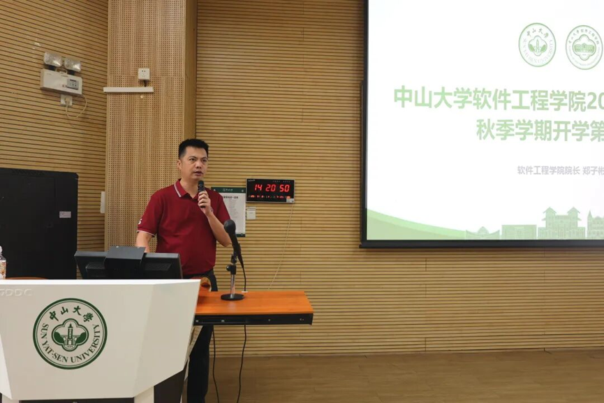 院长郑子彬教授系统介绍了学院的发展历程、学科建设、师资队伍、科研平台与人才培养成果等方面情况。他强调学院注重个性化培养,鼓励新生早进实验室、早进课题组、早参与科研,积极参加学科竞赛、创新创业项目与社会实践,全面提升综合素质。他希望新生能融入学院高效沟通、平等透明、快速成长的文化氛围,深耕信息技术,培养科学素养和创新精神,在交叉领域寻找机遇,实现个性化成长,成长为引领新一轮科技革命的卓越软件工程人才。