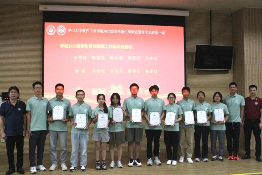 为弘扬志愿服务精神与树立模范典型,学院广泛征集2025级本科新生的建议,民主推选出在军训期间为大家默默服务的志愿者代表。学院党委陈征宇书记与院长郑子彬教授共同为十名军训保障工作标杆志愿者颁发荣誉证书,鼓励大家继续发扬传递奉献、友爱、互助、进步的精神,多为班级、学院和学校做实事。