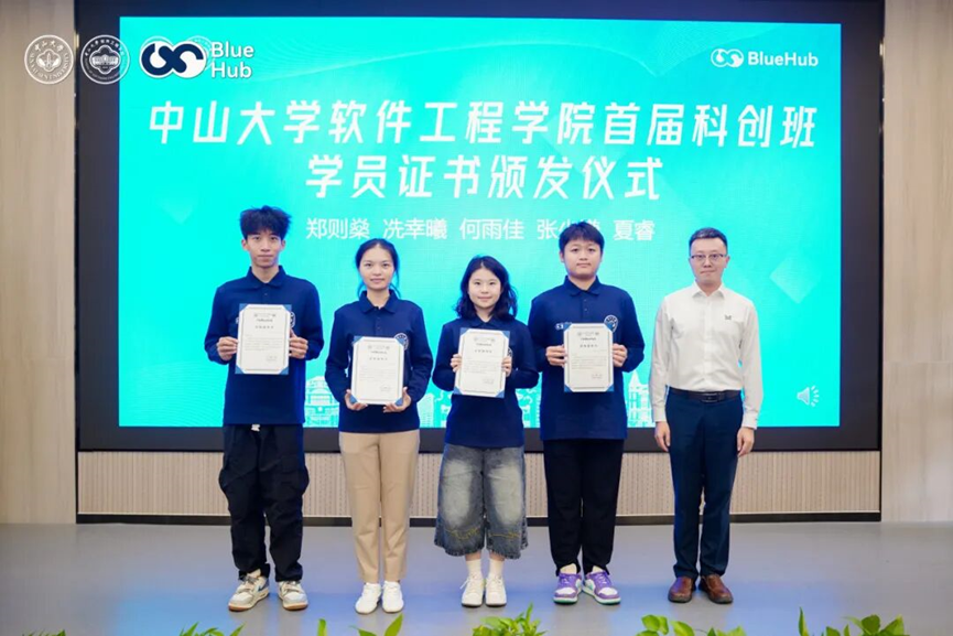 开课仪式上,学院党委副书记蓝澍德代表学院致辞,鼓励同学们勇于探索、敢于创新,积极投身于国家科技自立自强的伟大事业中。随后,学院为全体科创班学员颁发学员证书,标志着他们正式成为Blue Hub科创班的一员。